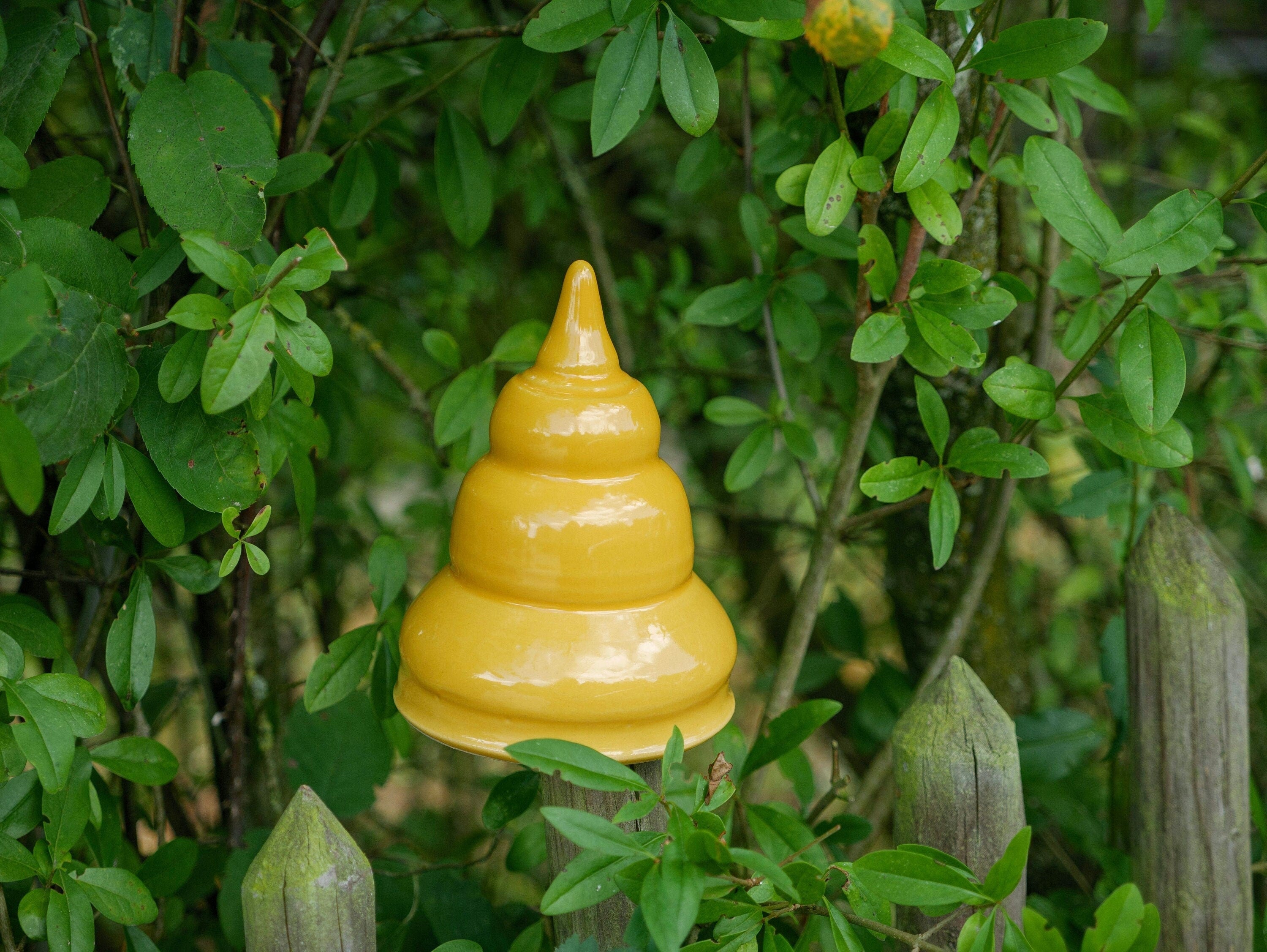 • Handgefertigter Beetstecker / Pfostenhocker – Gelb, ca. 12 cm hoch, Öffnung 5–6 cm