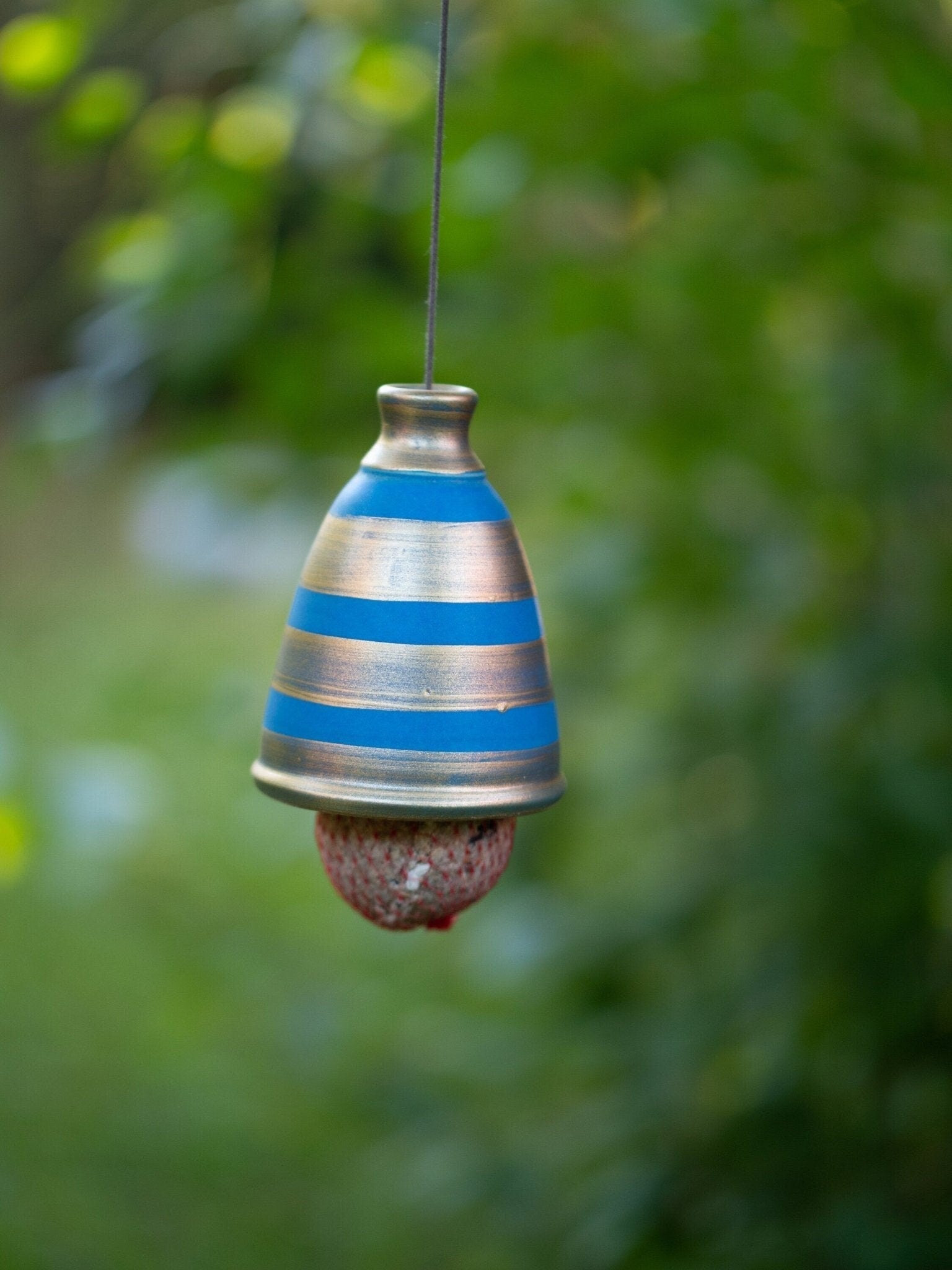 • Handgefertigte Meisenknödel-Halterung aus Keramik – blaue Streifen, frostfest & wetterbeständig